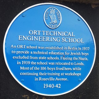 [2] Now a Muslim girls school, a blue plaque on the building preserves the memory of the ORT Technical Engineering School in Leeds