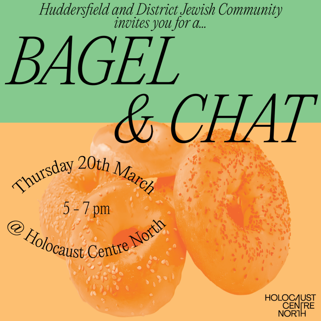 Working with Holocaust Centre North, based at The University of Huddersfield, a “Bagel & Chat” will be held on Thursday 20th March from 5:00 – 7:00 pm to discuss how such a community could develop.