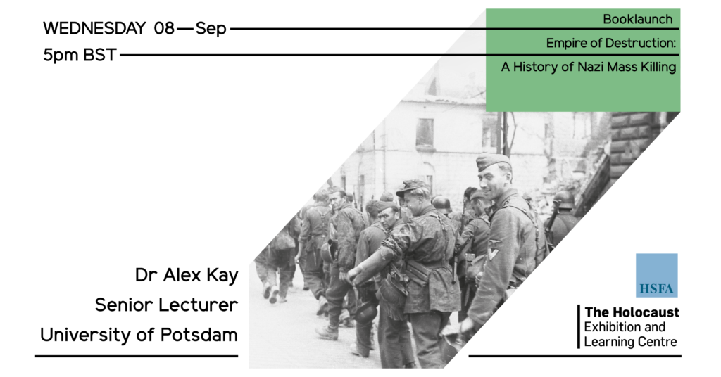 Nazi Germany killed approximately 13 million civilians and other non-combatants in deliberate policies of mass murder, overwhelmingly during the war years. Almost half the victims were Jewish, systematically destroyed in the Holocaust, the core of the Nazis’ pan-European racial purification programme. For the first time, Dr Alex Kay’s latest book, Empire of Destruction, considers Europe’s Jews alongside all other major victim groups and shows how each was regarded by the Nazi regime as a potential threat to Germany’s ability to successfully wage a war for hegemony in Europe. This event will explore this new, ground-breaking study, which combines the full quantitative scale of the killings with the individual horror.