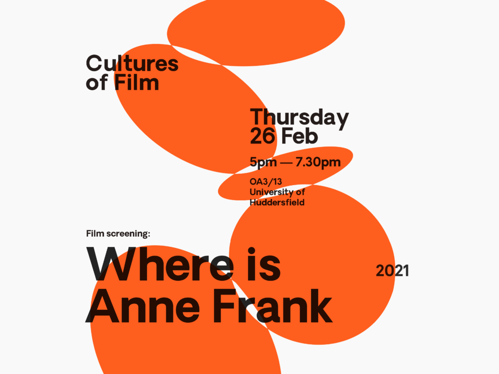 Join us to watch ‘Where is Anne Frank’, a free film screening as part of Cultures of Film in partnership with the University of Huddersfield.