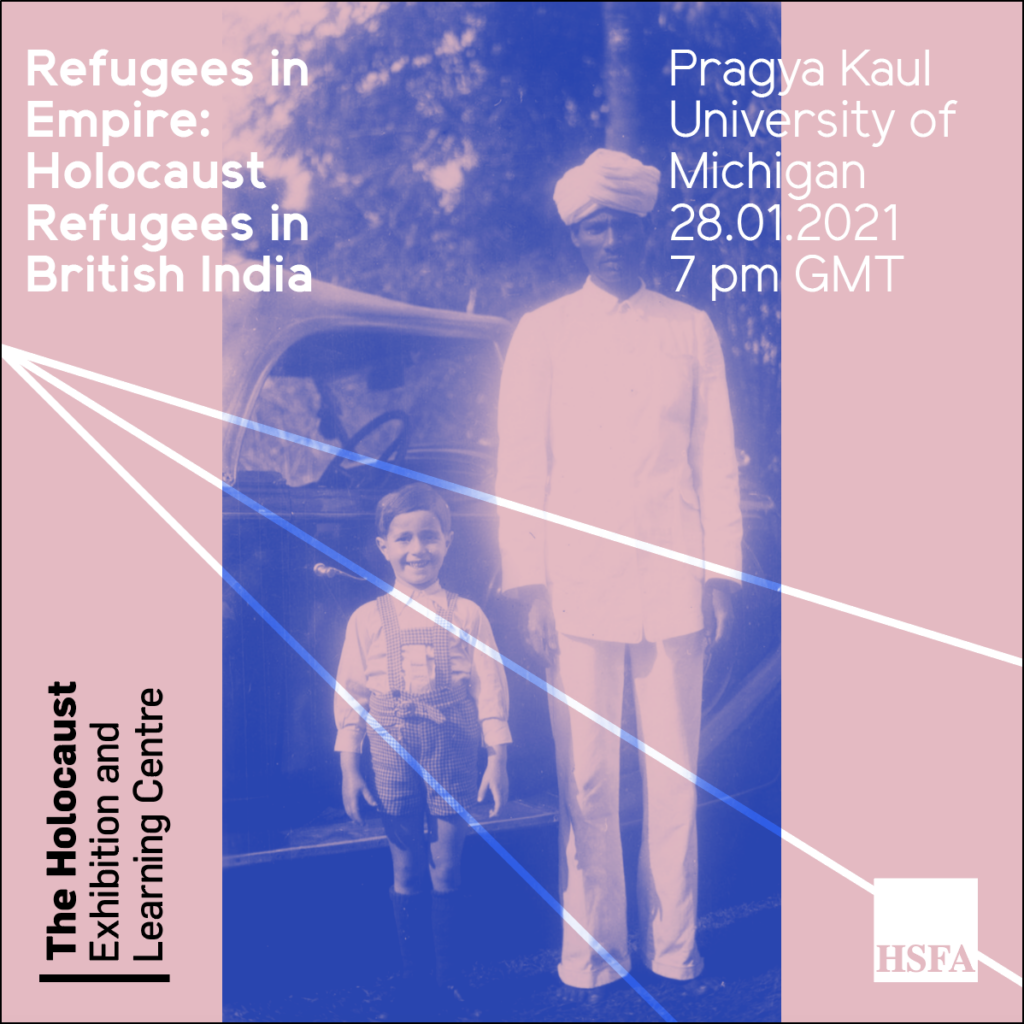 This talk by Pragya Kaul from the University of Michigan will use photographs and writings of Jewish refugees in British India to look at the place of European Jews in colonial hierarchies. It will also address the fact that Jewish people were categorised in certain ways, mostly not by their own choice, both before and following the start of the Second World War; refugees settling in India responded to this changing status in different ways. By including this narrative of empire and the idea of colonial hierarchy, we can ask new questions about Holocaust refugees, and also direct these questions to the archives that allow us to know more about them.