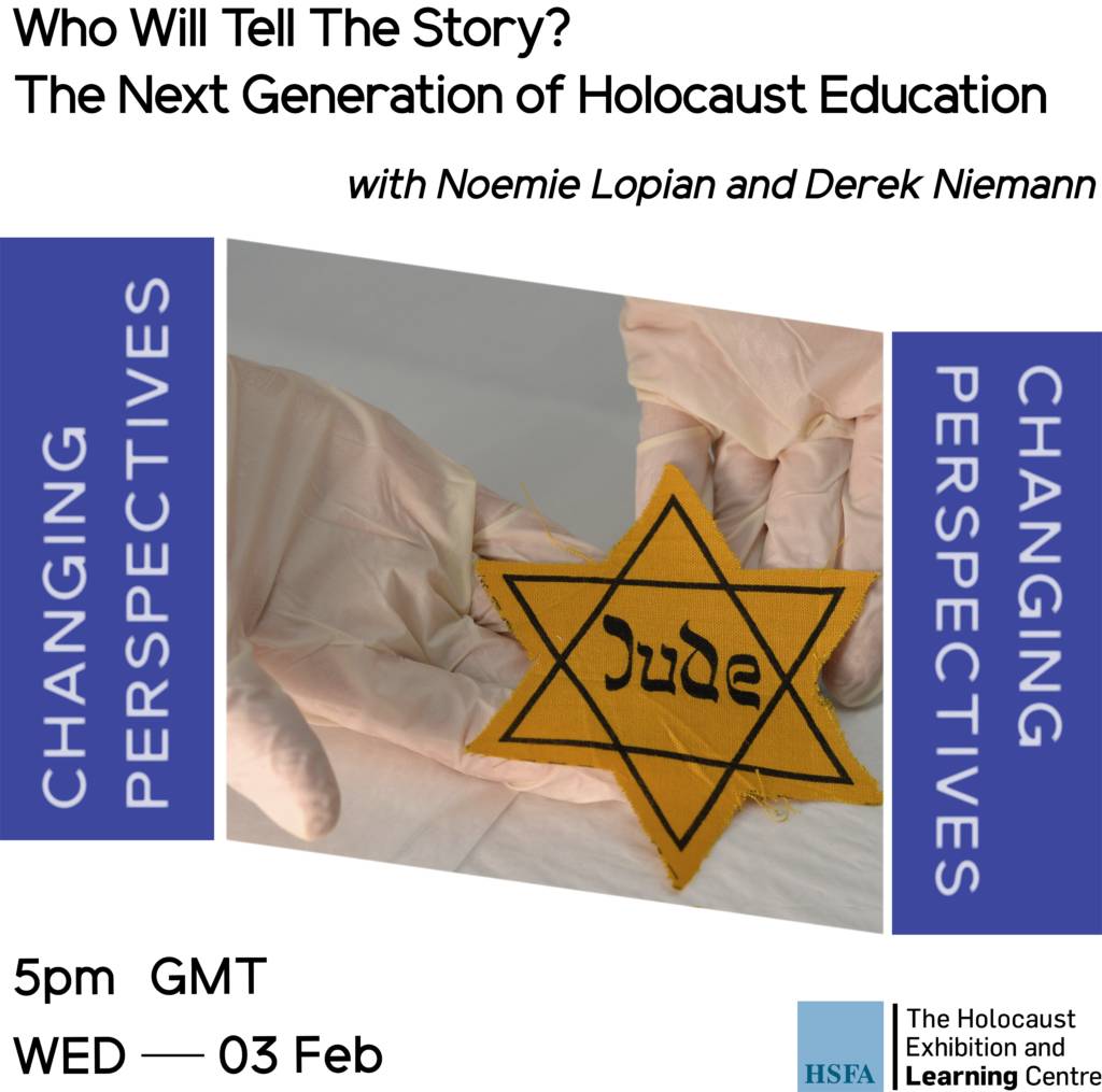 In this latest event from the ‘Changing Perspectives’ series we will explore the future of Holocaust education after there are no longer any Holocaust survivors. We will be joined by Dr Noemie Lopian and Derek Niemann as they tell their unique stories, and how they use their story to educate about the Holocaust. There will then be a discussion to explore different ideas about Holocaust education in the future.