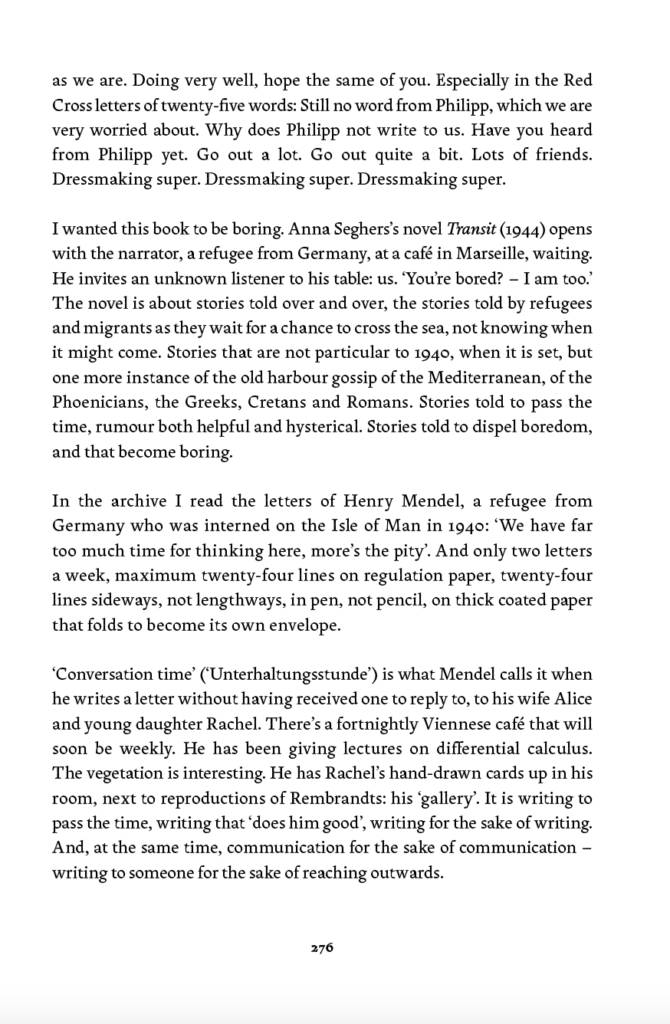 Conversation Time is a collection of translations from letters written between 1938 and 1945 by refugees from and victims of the Nazi genocide. The selection focuses on greetings, formulae, writing about writing—the ordinary and repeated phrases that people used to express themselves to friends and family members from whom they were separated, not knowing when or if they would receive a reply. Stories of displacement and persecution, anxiety and longing are communicated indirectly, pressing through from behind the written repetitions and everyday language, visible to us through the letters’ dates. Conversation Time addresses the challenges of translating these letters now – how to convey their ordinariness, what it means to be a human translator in an age of machines, and how to let resonances between the letters, and between the letters and the present, sound out.