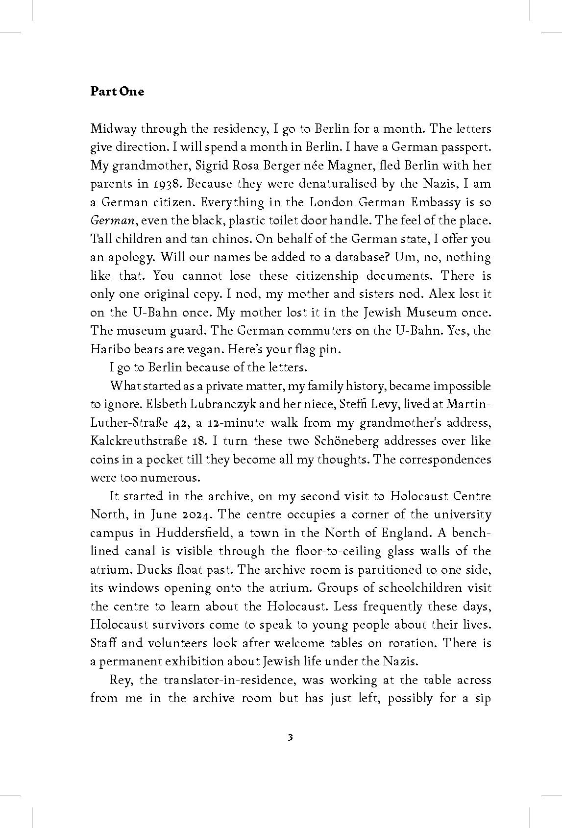When Tom Hastings discovers that his grandmother lived a short walk from Else Lubranczyk, a middle-class Jewish seamstress whose letters are kept in the Holocaust Centre North Archive, he travels to Berlin. Else’s letters to her refugee daughter, Helga, tell a story of ordinary life in Schöneberg; of recriminations, fantasies of reunion, and thwarted attempts to get out. But where the author’s grandmother fled, Else and her niece, Steffi Levy, were deported to Theresienstadt in 1943.