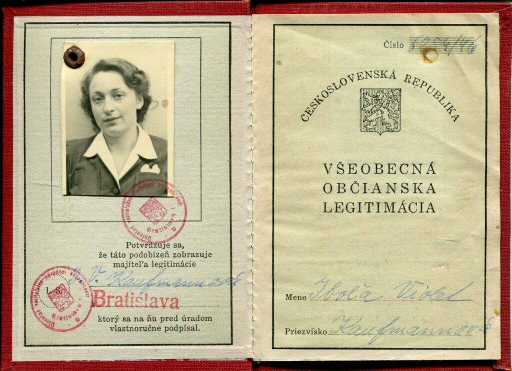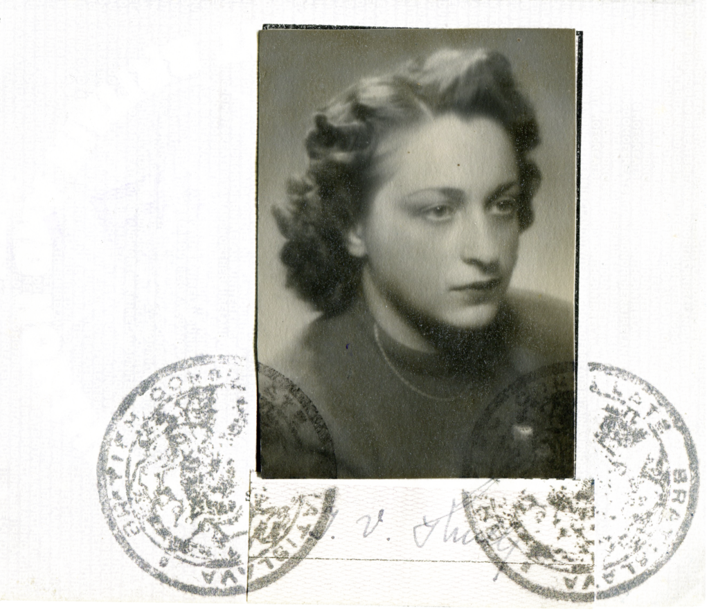 Born in 1923, Iby grew up in an educated, cultured family where she and her brother, Tomy, spoke several languages. Religion played little part in Iby’s childhood. She attended a German grammar school where she flourished. When the pro-Nazi Slovak puppet regime implemented a version of the Nuremberg laws in 1939, she was forced to transfer to a Jewish school.