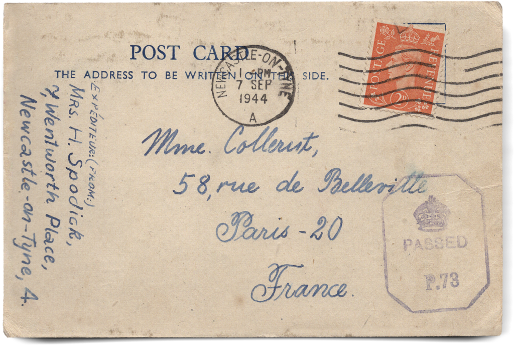 In 1947, Suzanne’s foster mother Madame Tilleux received a letter from Madame Collomb, saying that the Red Cross had decided to send Suzanne to England. Madame Tilleux however wanted to adopt Suzanne as she had been useful to her. After extensive correspondence, the Red Cross came to the Auvergne with Madame Collomb and took Suzanne to Paris.