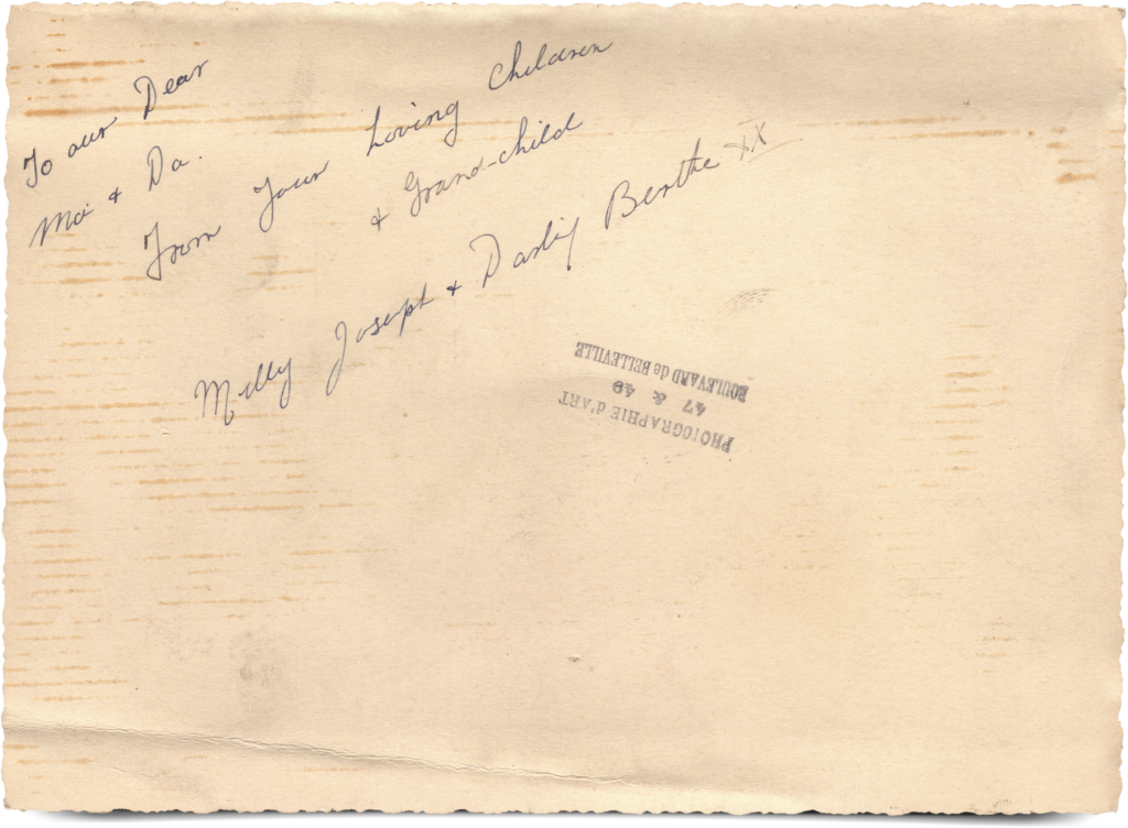 Suzanne was born in Paris in 1936 to Millie and Joseph Rappaport. The family observed some Jewish holidays and traditions, but religion was not a major part of their life. Suzanne remembered that her early years were happy and that she often went to the theatre and cinema with her parents, and to musical soirées in neighbours’ homes. They also spent a lot of time visiting other family members, including Suzanne’s paternal grandparents who lived nearby.